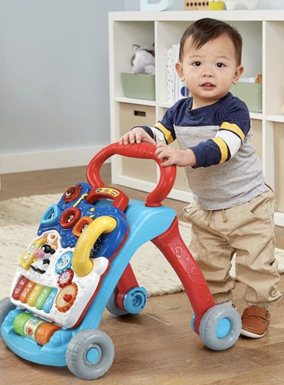 Toys that promote motor skills are perfect for infants and toddlers in physical therapy. If your munchkin is on the move, look for items that encourage crawling, standing, or walking, like push toys or activity walkers, which are both entertaining and developmentally helpful. This V-Tech Sit to Stand Walker is a great gift that will last through multiple stages.
