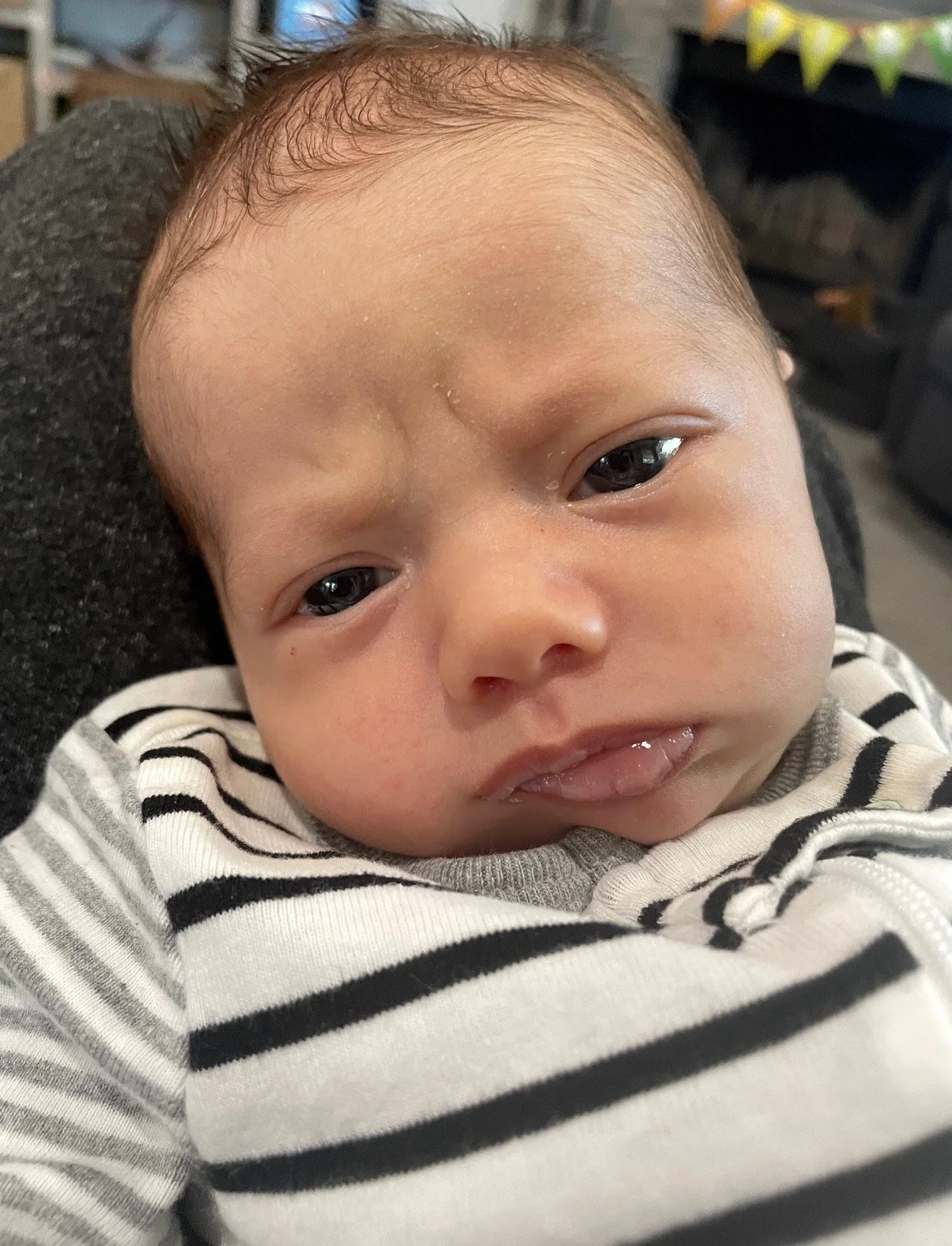 Torticollis is when the muscles of the neck cause the head to tilt to one side. As you can see in the image above, this newborn is leaning more over his right shoulder. This means his tightness is on the right side. Torticollis can develop due to multiple factors, including positioning in the womb or preferences in head positioning post-birth. While it might be instinctive to think that simply stretching this tight muscle in the neck is the solution, torticollis is often a symptom of broader neuromuscular or skeletal issues that require a multifaceted treatment approach.
